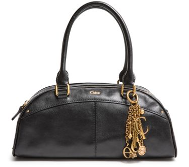 Genieße die Schultertasche Chloé Bowling von Chloé aus glattem Leder mit doppelgriffen. Kettenanhänger aus goldfarbenem Metall und ein Logo in goldfarbenen Buchstaben auf der Vorderseite setzen elegante Akzente, während sichtbare nähte und ein innenfach mit reißverschluss Funktionalität bieten.