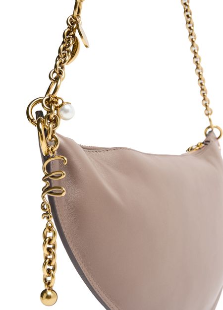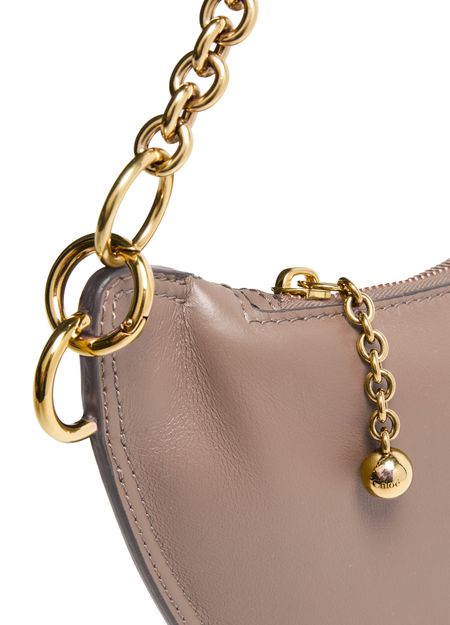 Entdecke chloe's Schultertasche Icon, gefertigt aus glattem Leder und verziert mit einem Metall-Pferdemedaillon. Der elegante Kettengurt und der Reißverschluss vereinen Funktionalität mit Stil. Das Logo auf der Vorderseite in goldfarbenen Buchstaben und sichtbare Steppnähte unterstreichen seine edle Ausstrahlung.
