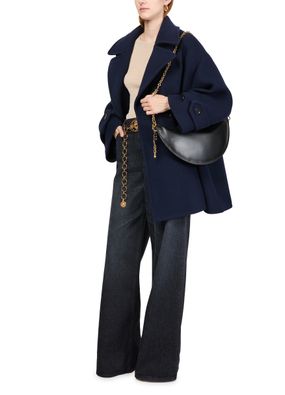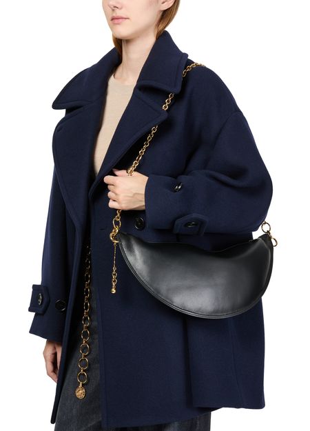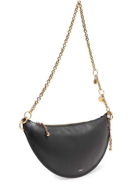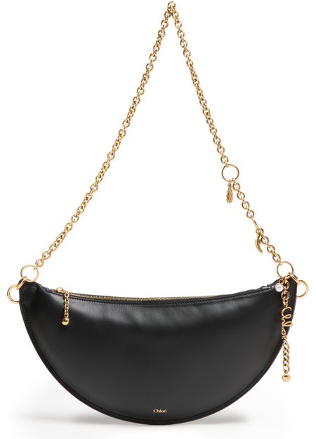 Entdecke chloe's Schultertasche Icon, gefertigt aus glattem Leder und verziert mit einem Metall-Pferdemedaillon. Der elegante Kettengurt und der Reißverschluss vereinen Funktionalität mit Stil. Das Logo auf der Vorderseite in goldfarbenen Buchstaben und sichtbare Steppnähte unterstreichen seine edle Ausstrahlung.
