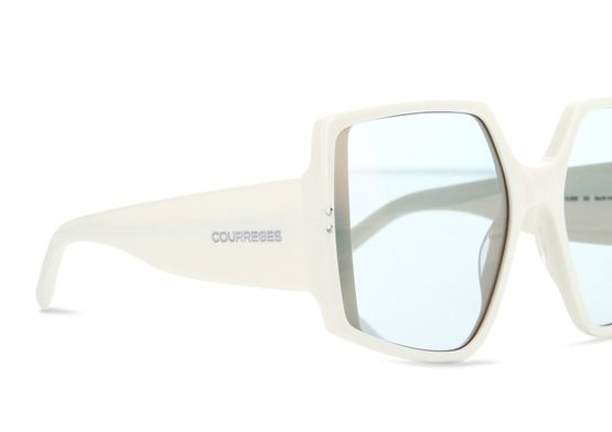 Die Sonnenbrille Panda stammt von Courreges. Dieses Modell stellt eine Struktur aus Acetat vor. Diese Sonnenbrille kombiniert große Gläser mit breiten Bügeln.