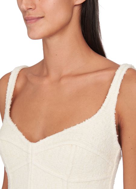• Beschreibung : Dekolleté, dünne Träger, falten vorn, kontrastierende Nähte, symbol des Modehauses.