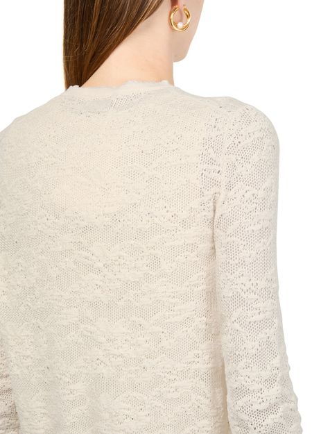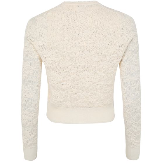 • Beschreibung : Rundhalsausschnitt, eng anliegende ärmel, lange ärmel, zum tragen mit einem oberteil darunter, knopfverschluss, spitzendetails.