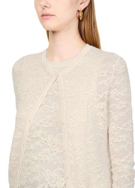Entdecke Chloes Strickjacke, ein zeitloses Stück mit Rundhalsausschnitt und Knopfverschluss für mühelose Eleganz. Der Regular Fit und die langen, eng anliegenden Ärmel bieten eine schmeichelhafte Silhouette, während Spitzendetails für einen Hauch Raffinesse sorgen. Perfekt, um jedes Outfit stilvoll zu komplettieren.