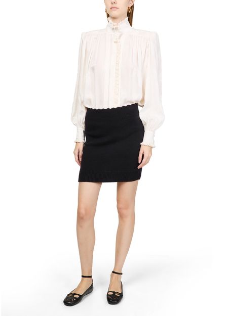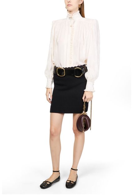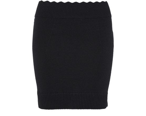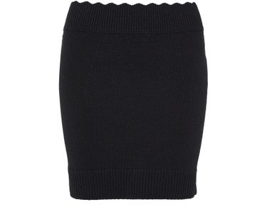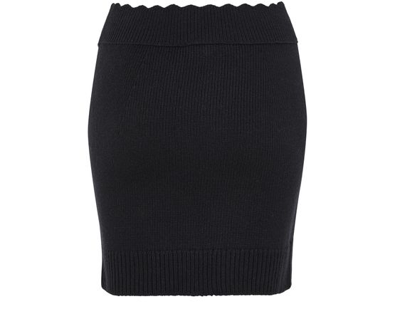 Entdecke Chloes Strickrock, ein rippbündchen Mini-Länge Stück mit elastischer Taille für eine schmeichelhafte Passform. Die gebogten Ränder verleihen Eleganz und machen ihn perfekt für lässige und formelle Anlässe. Dieser vielseitige Rock wechselt mühelos vom Tag zur Nacht und bietet Stil und Komfort.
