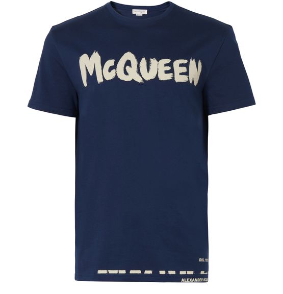 Dieses stilvolle und schlichte Kurzarm-T-Shirt bietet einen klassischen Schnitt, der durch das Graffiti-Logo als Markenzeichen des Modehauses Alexander McQueen aufgewertet wird.
