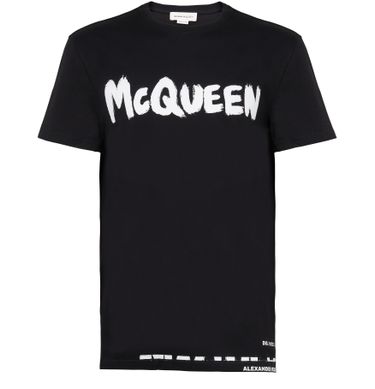 Dieses stilvolle und schlichte Kurzarm-T-Shirt bietet einen klassischen Schnitt, der durch das Graffiti-Logo als Markenzeichen des Modehauses Alexander McQueen aufgewertet wird.