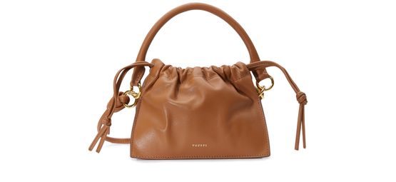 Mit der Tasche Mini Bom hat Yuzefi ein edles Accessoire aus geschmeidigem Leder entworfen, das in zwei Fächer aufgeteilt ist. An ihrem kurzen Henkel lässt sie sich elegant in der Hand tragen.