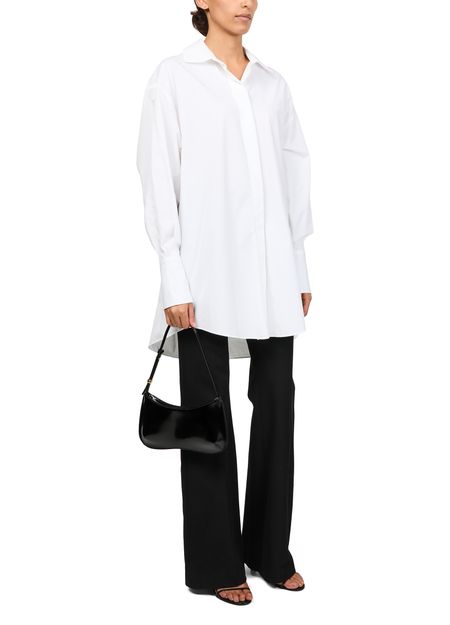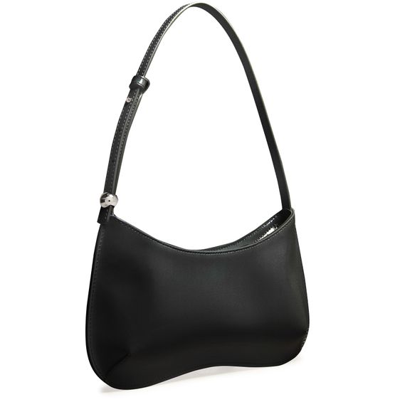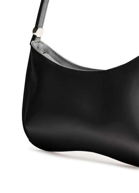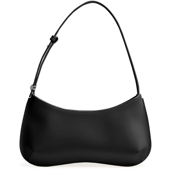 Entdecke Jacquemus Tasche The Bisou, ein elegantes Schulteraccessoire mit einem einzelnen Henkel aus glattem Leder und einer edlen Silberoptik.