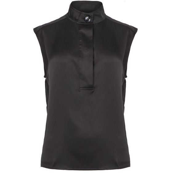 • Beschreibung : knöpfe auf der vorderseite, sichtbar nähte, regelmäßig, ärmellos, hochgeschlossener ausschnitt, blusen.