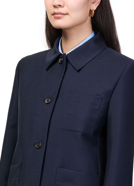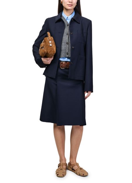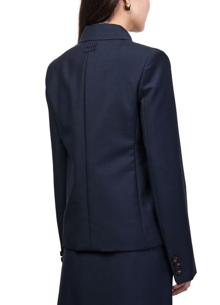 Erlebe die Wolljacke mit einfacher Knopfleiste von Miu Miu – kurz geschnitten, mit langen Ärmeln und praktischen aufgesetzten Taschen. Das gestickte „Miu Miu“-Logo und die Knöpfe auf der Vorderseite verleihen dem Modell einen modernen Charakter, der vielseitig kombinierbar bleibt.