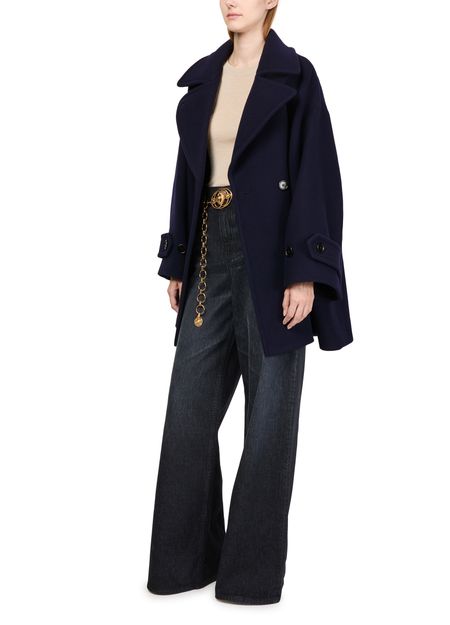 Entdecke chloes zweireihigen Mantel mit seinem oversize-Schnitt und der kurzen Länge, ideal für eine moderne Silhouette. Der lange ärmel und der Kragen ergänzen die praktische Pattentasche und die zweireihige Knöpfung, wodurch dieser klassische Mantel zu einem vielseitigen Begleiter wird.