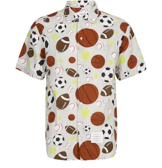 Bei diesem bedruckten Hemd spielt Thom Browne mit einem grafischen Effekt. Das farbenfrohe bildhafte Sportmotiv akzentuiert den klassischen Schnitt des Stücks.
