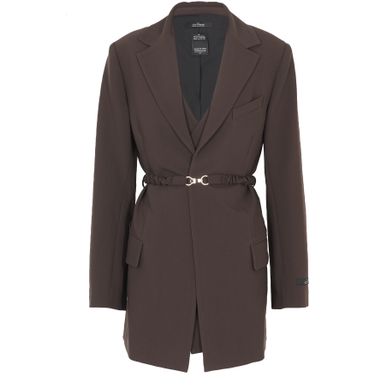 Der Designer Rokh sublimiert diesen Blazer mit Gürtel mit einem Schnitt, der die Silhouette gekonnt zur Geltung bringt. Ein harmonisches und gewagtes Modell, um die Linie zu verfeinern.