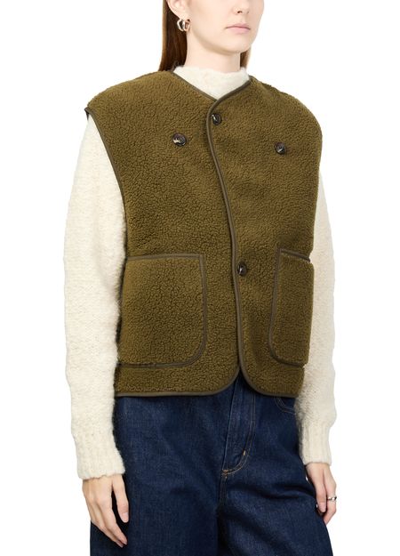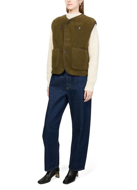 Entdecke Soeurs Ärmelloses Jacke Floyd, ein Meisterwerk modernen Designs. Dieser regular fit, kurze Jacke mit Knopfverschluss und aufgesetzten Taschen bietet Stil und Funktionalität. Aus wärmendem Stoff mit Polstertextur gefertigt, ist er kragenlos und ärmellos, was ihn zu einem vielseitigen Stück für jeden Anlass macht.