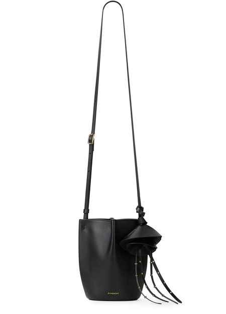 Genieße die Bucket Bag Nano Snap von Givenchy, gefertigt aus glattem Leder mit gold-finish. Der einstellbare, dünne Trageriemen und der einzelne Griff sorgen für flexible Tragemöglichkeiten, während das Logo auf der Vorderseite in goldfarbenen Buchstaben einen stilvollen Akzent setzt.