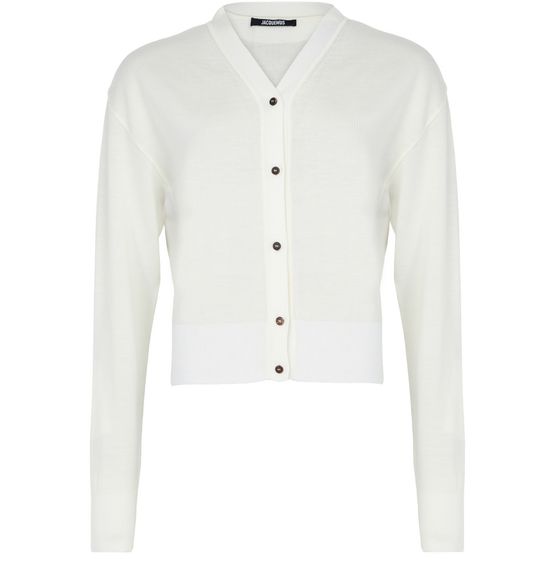 Erlebe Jacquemus Cardigan The Brode, ein stilvolles Must-Have mit langen, eng anliegenden Ärmeln. Der Knopfverschluss verleiht einen klassischen Touch, während die schlanke Silhouette modernen Flair bietet. Perfekt für jede Gelegenheit, vereint dieser Cardigan Eleganz mit Komfort.