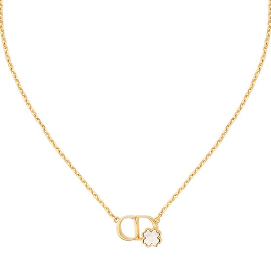Erlebe Diors CD Garden Halskette. Dieses exquisite Schmuckstück besticht durch ein leuchtendes Perlmutt-Kleeblatt-Detail und vereint Eleganz mit zeitlosem Stil. Das feine CD-Emblem und der sichere Karabinerverschluss machen es zur idealen Ergänzung für jede anspruchsvolle Garderobe.