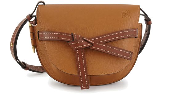 Die Crossbody-Tasche Petit Gate trägt die Signatur von Loewe. Dieses Stück aus Kalbsleder zeigt ein abgerundetes Design, das durch ein Verschlusssystem aus stilisierten Riemen unterstrichen wird.