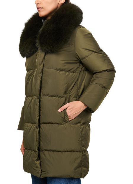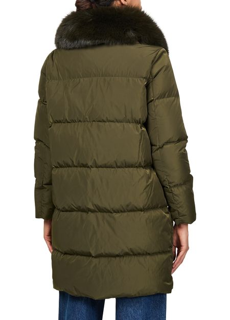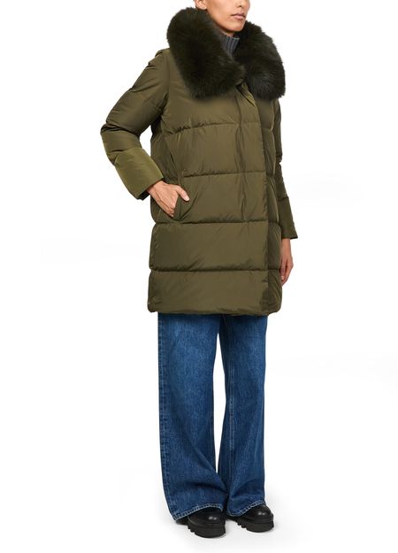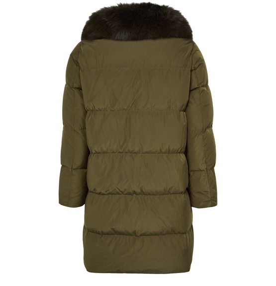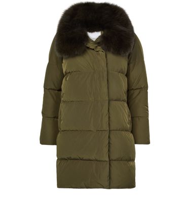 Entdecke die Daunenjacke mit Kragen aus Fuchspelz von Yves Salomon. Das oversized, lange Design sorgt mit seiner Polstertextur für kuschelige Wärme. Mit verdecktem Verschluss und praktischen Seitentaschen vereint sie Pelzdetails und Funktionalität, ideal für jeden Anlass.