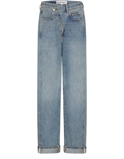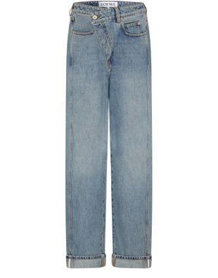Beschreibung : knopfverschluss und verdeckter reissverschluss, logo auf der rückseite, logoapplikation, etikett mit logo auf der rückseite, knöchellänge, gürtelschlaufen, five-pocket-style, sichtbar nähte, denim.