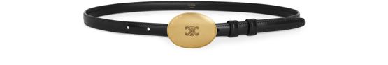 Entdecken Sie den Thin Plate Gürtel, Gürtel in mittlerer Taille von Celine, verziert mit einem gealterten Gold-Finish. Mit seiner ovalen Schnalle und der Triomphe-Gravur verleiht er Ihrem Outfit eine elegante Note.