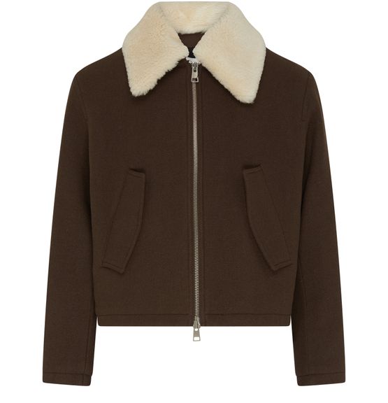 • Beschreibung : reißverschluss, pelzdetail, etikett mit logo auf der rückseite, logoapplikation, kurz, seitliche paspeltaschen, lange ärmel, leder und pelze.