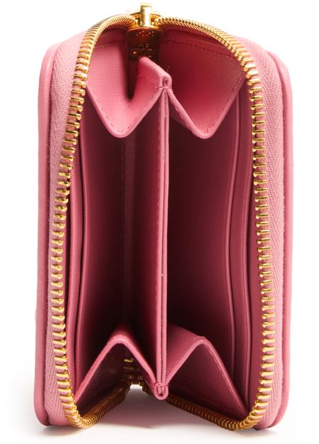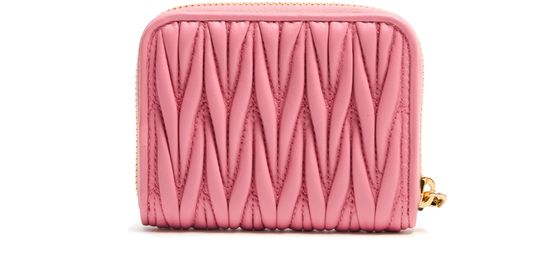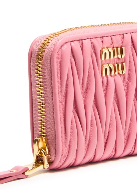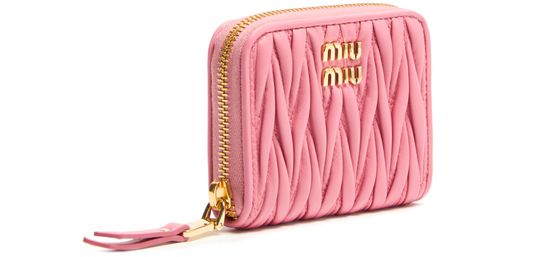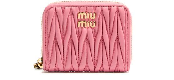 Genieße Miu Mius geldbörse mit reißverschluss aus gestepptem leder. Diese elegante Kreation vereint Funktionalität mit Stil, mit dem „Miu Miu“-Logo mit Metallbuchstaben und dem Steppdetail im Signatur-Chevronmuster. Die sichtbare steppnähte und der sichere reißverschluss sowie kartenschlitze im inneren sorgen für Praktikabilität.
