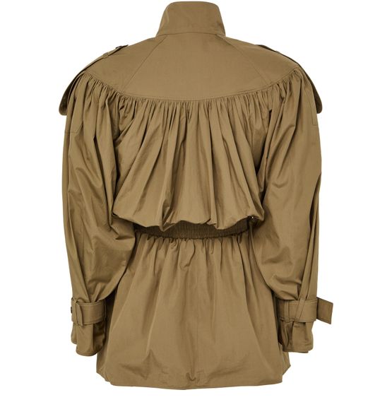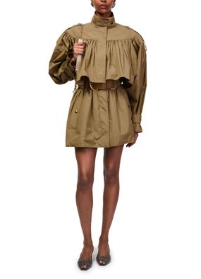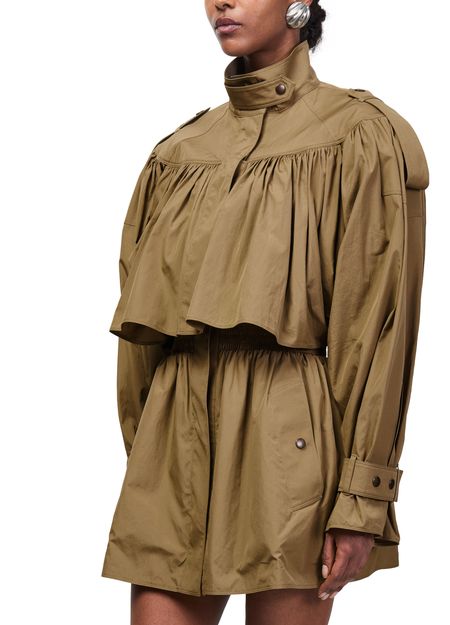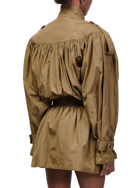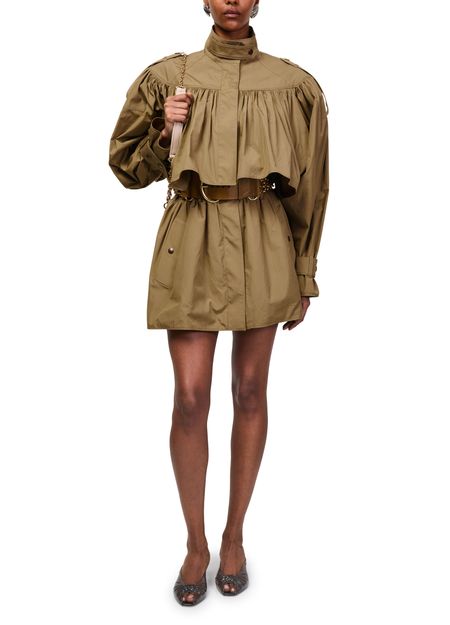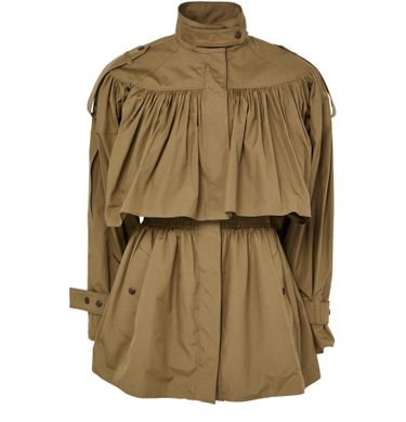 Genieße den gerafften Mantel von Chloé – kurz geschnitten mit klassischem Kragen und verdecktem Verschluss. Lange Ärmel und aufgesetzte Taschen sorgen für Funktionalität, während das Regenmantel-Design vielseitige Stylingmöglichkeiten bietet. Ein modernes Statement für stilbewusste Outfits.