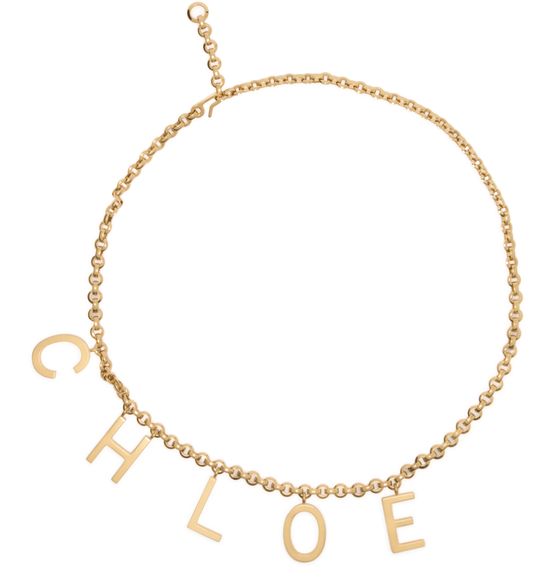Entdecke chloes Gürtel Chloe Letters, einen beeindruckenden Kettengürtel mit schmuck aus goldfarbenem metall für ein elegantes Finish. Das Logo in goldfarbenen Buchstaben verleiht eine edle Note und macht ihn zu einem vielseitigen Accessoire, das zu jedem Outfit passt. Entworfen, um an Taille oder Hüften getragen zu werden, ist er ein unverzichtbares Element Ihrer Garderobe.