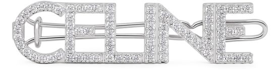 • Beschreibung : Messing und kristalle, nickelfrei, silber-finish, spangenverschluss, stacheln für halt an der rückseite, mit „celine“ gravur, maße der haarspange: 4,5 x 1,2 cm.