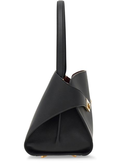 Genieße die Handtasche Hug von Salvatore Ferragamo aus glattem Leder mit goldfarbener Schließe und Logo auf der Vorderseite. Ein dünner, einstellbarer und abnehmbarer Trageriemen sowie ein einzelner Griff sorgen für flexible Tragemöglichkeiten und ein kontrastierendes Futter rundet das Design ab.