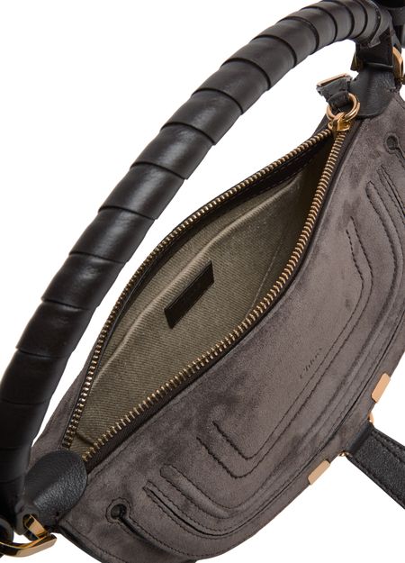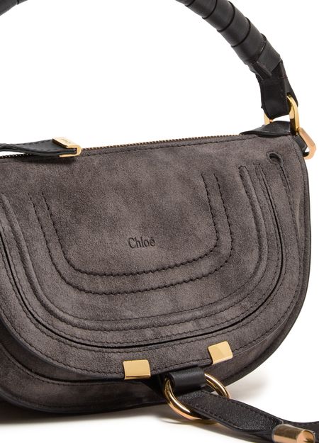 Genieße Chloes Handtasche Marcie aus edlem Veloursleder mit Signatur-Sattelstichen. Ein einzelner Griff und ein dünner, einstellbarer sowie abnehmbarer Trageriemen sorgen für flexible Tragemöglichkeiten. Gold-Finish, geprägtes Logo auf der Vorderseite, Innentasche und Reißverschluss runden das stilvolle Design ab.