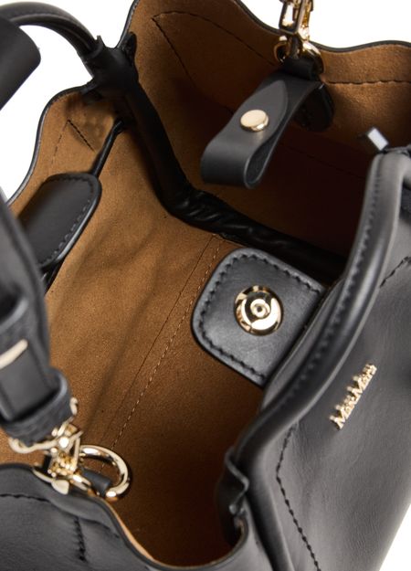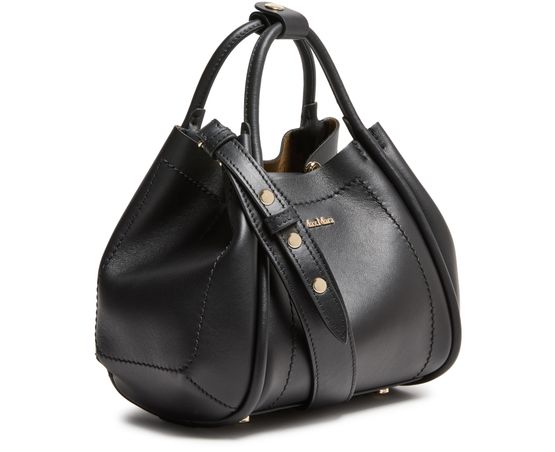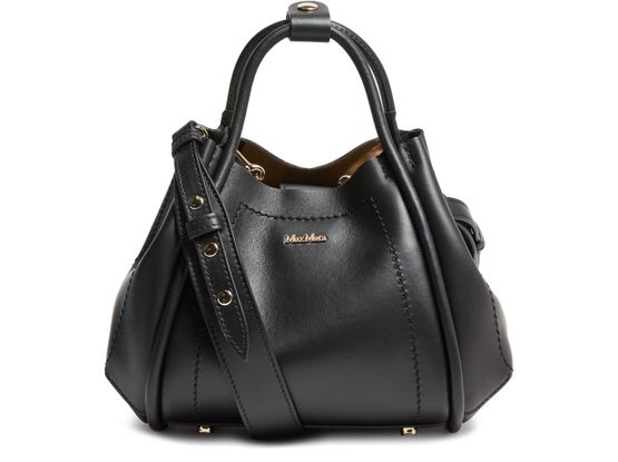 Erlebe die Handtasche Marine von Max Mara. Diese Schulter- und Umhängetasche aus glattem Leder besticht durch ein metallisches Logo auf der Vorderseite. Mit doppelten Ledergriffen und einem breiten, verstellbaren Riemen bietet sie vielseitige Tragemöglichkeiten für den modernen Stil.