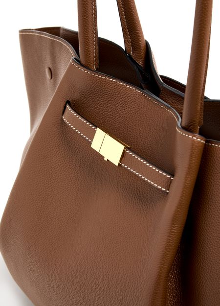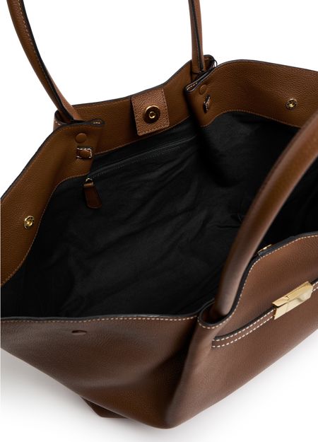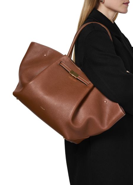 Genieße Demelliers Handtasche The New York, die mit einem magnetischen Verschluss und einem einzigen Fach für eine mühelose Organisation gefertigt ist. Die goldene Oberfläche, doppelten Griffe und das Frontlogo verleihen einen eleganten Touch, während die Innentasche mit Reißverschluss und der dünne Riemen vielseitige Tragemöglichkeiten bieten.