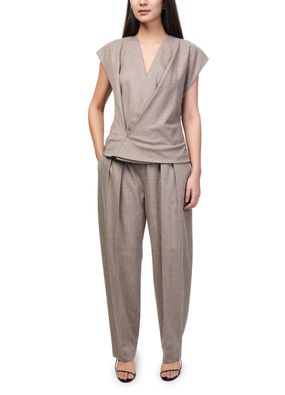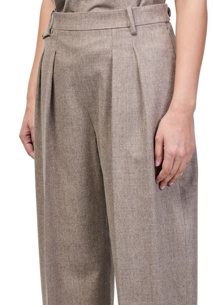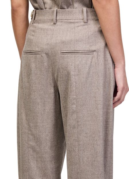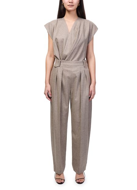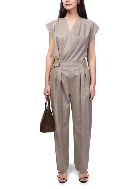 Genieße die Hose Dugan von Khaite mit gegürteter Taille und plissierten Details vorn für eine stilvolle Silhouette. Knöchellänge, sichtbar Nähte und Seitentaschen verbinden Eleganz mit Funktionalität. Ein verdeckter Verschluss und Gürtelschlaufen runden diese business Hose modern ab.