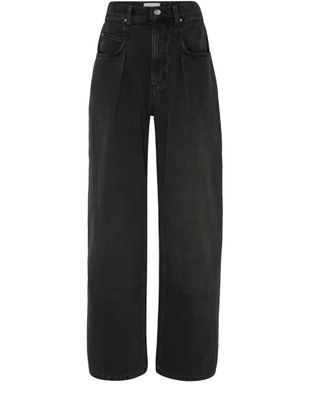Beschreibung : knopfverschluss und verdeckter reissverschluss, gürtelschlaufen, logoapplikation, lederetikett auf der rückseite mit logo, sichtbar nähte, knöchellänge, five-pocket-style, weiter schnitt, denim, mit hoher taille tragbar.