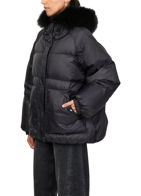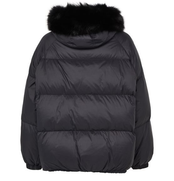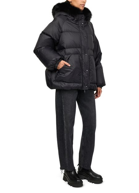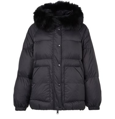 Genieße die kapuzendaunenjacke mit bordüre aus fuchspelz von Yves Salomon. Diese oversize, kurze Jacke besticht durch ihre polstertextur und den knopfverschluss. Aufgesetzte taschen und lange ärmel bieten praktische Eleganz, ideal für diverse Anlässe.