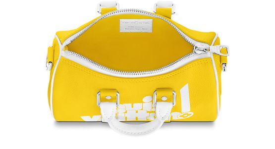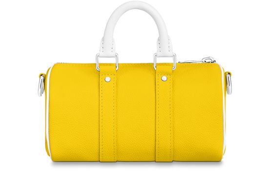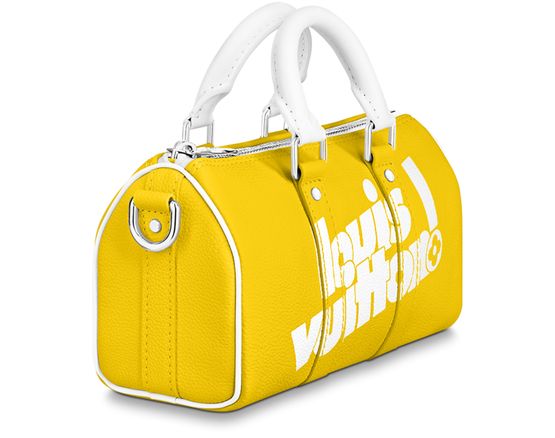 Die Keepall XS Herrentasche im modischen Kleinformat ist eine kompakte Neuinterpretation der ikonischen Louis Vuitton Keepall Weekender-Tasche aus den Dreißigerjahren. Diese Kreation von Virgil Abloh ist aus leuchtend gelbem Leder gearbeitet und zeigt seine neue „louis vuitton!“ Grafik. Zwei Tragegriffe an der Oberseite sowie ein verstellbarer Riemen zum Tragen in der Hand oder über der Schulter vervollständigen das Design.