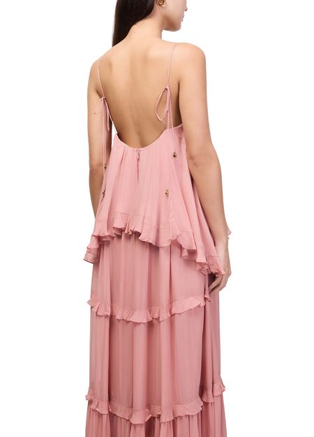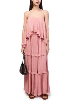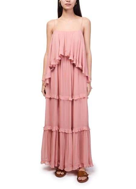 Genieße das Kleid mit Volants Luna von Zimmermann – ein langes, ärmelloses Modell mit rundhalsausschnitt. Die ausgestellte Form, feine rüschendetails und zarte träger verleihen diesem Kleid eine moderne Eleganz für besondere Anlässe und stilvolle Auftritte.