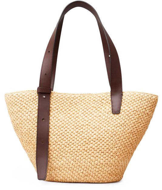 Erlebe Lié Studios kleine Raffia-Tasche Bianca, eine Meisterleistung der modernen Eleganz. Diese Tote besticht durch ihre durchbrochene Strickstruktur und doppelgriffe, die Stil und Funktionalität vereinen. Die sichtbaren Steppnähte heben die Handwerkskunst hervor, während das einzelne Fach funktionale Eleganz für Ihre Utensilien bietet.