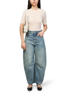Genieße das kurzärmelige Top aus Merinowolle von Courreges mit rundhalsausschnitt und gesticktem logo auf der vorderseite. Die feine Merinowolle und die klaren Linien verleihen dem Top eine moderne Note – ideal für vielseitige Looks von Tag bis Abend.