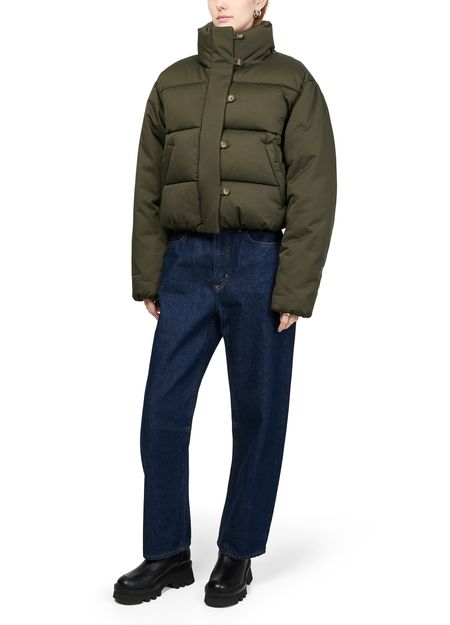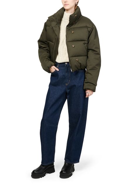 Entdecke Soeurs kurze Daunenjacke Flore, die Stil und Funktionalität vereint. Diese regular fit, crop Jacke mit hohem Kragen und langen Ärmeln bietet eine elegante Silhouette. Der Knopfverschluss und der verdeckte Reißverschluss sorgen für Praktikabilität, während die Polstertextur und die Seitentaschen ihren modernen Reiz unterstreichen.