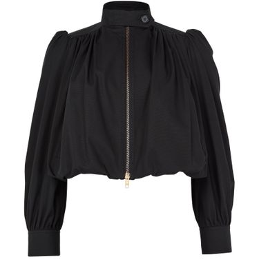 Genieße Chloes kurze jacke mit raffung, die mit hohem kragen und langen ärmeln überzeugt. Der reißverschluss und die raffinierten rüschendetails verleihen dem cropped-Design einen modernen Twist – perfekt für vielseitige Outfits von entspannt bis elegant.