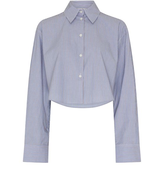 Beschreibung : knöpfe auf der vorderseite, etikett mit logo auf der rückseite, logo auf der rückseite, logoapplikation, geprägtes logo, sichtbar nähte, hemdchen col, crop, lange ärmel, geknöpfte manschetten.