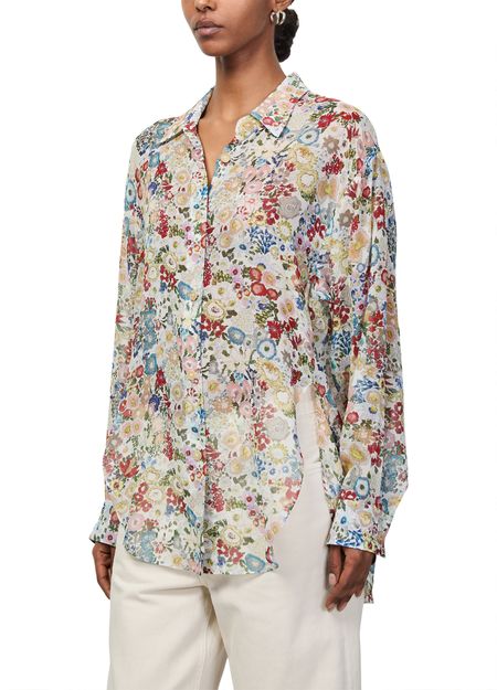 Erlebe Khaites langärmeliges Hemd Goya mit floralem Druck und eng anliegenden Ärmeln. Der Knopfverschluss sorgt für einen eleganten Akzent, während der moderne Schnitt vielseitige Stylingmöglichkeiten für verschiedene Anlässe bietet.