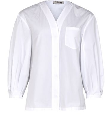 Admira das langärmelige Hemd Oro von S Max Mara, das mit seinem V-Ausschnitt und den eng anliegenden Ärmeln Eleganz verkörpert. Der weite Schnitt und der Knopfverschluss bieten sowohl Stil als auch Komfort, während die Brusttasche einen funktionalen Akzent setzt. Dieses Hemd vereint mühelos klassische und moderne Elemente und ist perfekt für jede Gelegenheit.