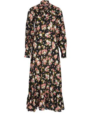 • Beschreibung : Florales Motiv, rüschen- und Raffungsdetails, lange Ärmel, weiter Schnitt, markierte Taille.