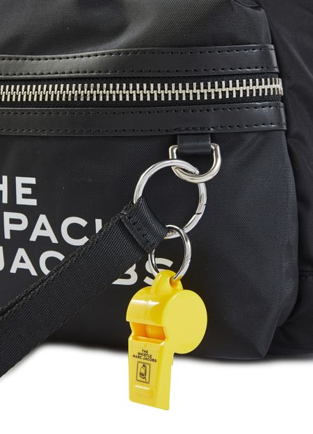 Mit diesem großen Rucksack bietet Marc Jacobs eine modernisierte Version des klassischen Backpacks an, die er mit einem Grafikdesign mit seiner Handschrift und einem farbenfrohen, fantasievollen Gadget bereichert.