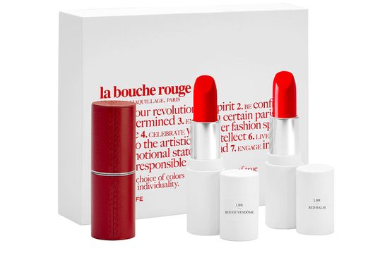Das rote Etuiset „Les Rouges Parisiens“ enthält das rote Etui der Kollektion Métiers d'Arts mit unserer Auswahl an Nachfüllpackungen: der Rouge Vendôme, das ultimative leuchtende Rot mit mattem Finish, und der rote Balsam für diskrete und elegante rote Lippen.