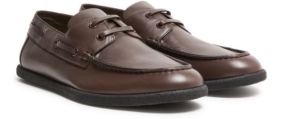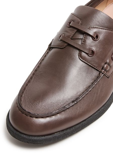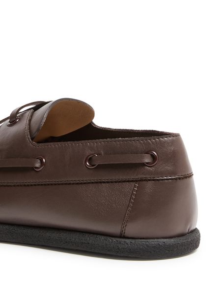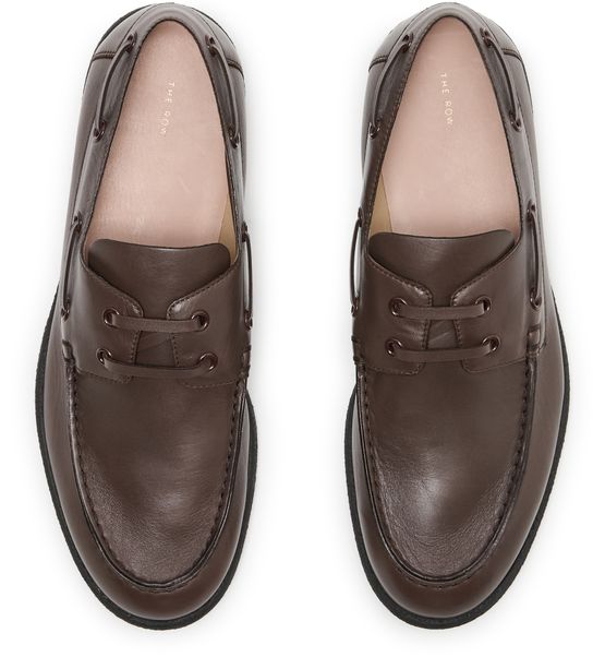 Genieße die Novus Sailor Mokassins von The Row, gefertigt aus glattem Leder mit runder Zehe und niedrigem Absatz. Sichtbare Nähte und ein aufgedrucktes Logo setzen stilvolle Akzente, während Schnürung und Riemen für modernen Halt sorgen. Perfekt für einen eleganten Auftritt.
